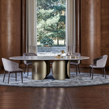 Mesa de comedor Rectangular de lujo con patas de acero inoxidable, encimera de piedra sinterizada de mármol, moderna