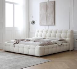Tela moderna italiana, tela blanca suave con mechones, cama doble de malvavisco, cama tapizada, cama de nube blanca crema