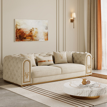 Italian Luxury Leather Sofa Set Modern Villa Living Room with Elegant Button Tufted Couch Genuine Leather Material for Hotels