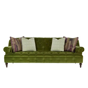 French Vintage Olive Green Solid Wood Sofa American Small Apartment Living Room Fabric Tufted High-back 1-3 Seater Sofa